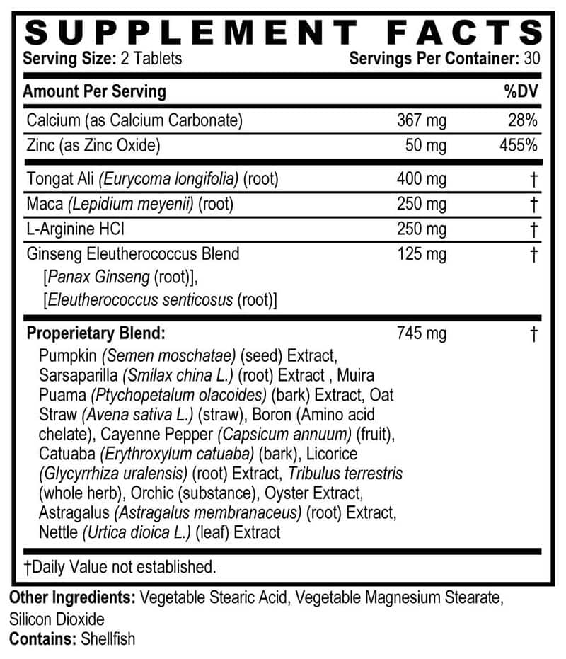 Male Enhancement contains Tongkat Ali, L-Arginine, a Ginseng blend and a proprietary blend specially formulated for male sexual enhancement & performance by improving drive and stamina!*
